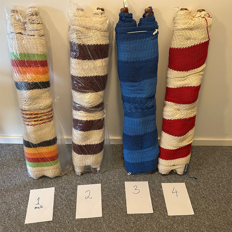 A rede artesanal sem nós oferece uma largura flexível. Portanto, não é possível dar uma medida exata, mas a largura flexível é entre 110 cm e 150 cm. Tudo depende de como você puxa a rede, mas a largura média é de 130 cm.