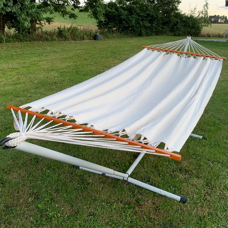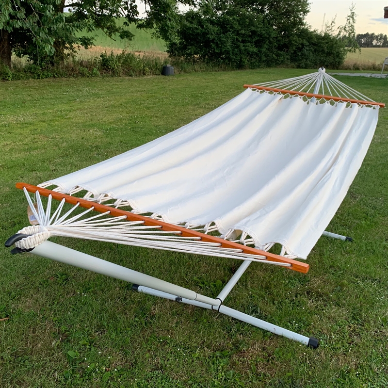 Rede de tecido em algodão 100% puro com cabo extensor de madeira 118 cm