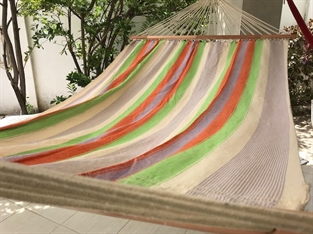 Rede ampla de tecido mega com borda casual e cabos arredondados de 140 cm de comprimento.