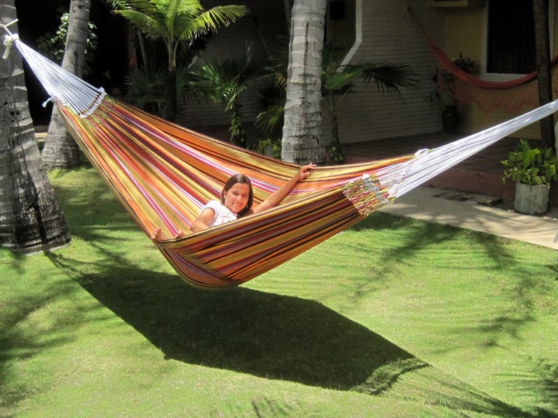 Rede de tecido super grande com muito espaço transversal e diagonalmente. É uma rede extra grande e muito longa.